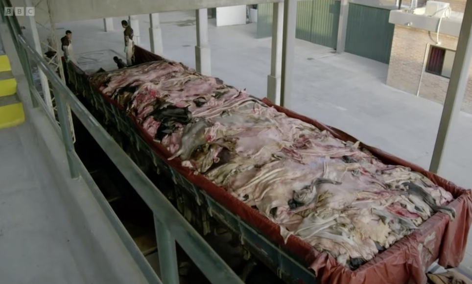 Un camion di pelli dell’azienda Chortizer, uno degli allevamenti che occupano e disboscano illegalmente la terra degli Ayoreo Totobiegosode. Immagine tratta dal documentario “South America – Episode 4” di BBC. © Simon Reeve/BBC