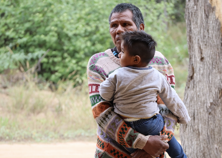 Namje Picanerai, uomo Ayoreo Totobiegosode, con il nipote. Gli Ayoreo Totobiegosode lottano da oltre 30 anni per la restituzione della loro terra ancestrale, nel Chaco paraguaiano. © Survival