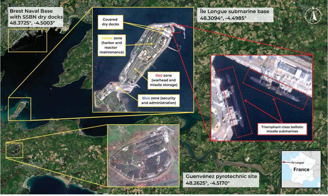 Il deterrente nucleare francese, invece, è del tutto autonomo sia dagli Stati Uniti che dalla NATO.[6]  A differenza della Gran Bretagna la Francia non ha missili balistici, ha però capacità di lancio sia sottomarino che aereo. La maggior parte delle sue circa 300 testate nucleari sono assegnate ai quattro sottomarini di classe Triomphant della Force Océanique Stratégique (FOST) di stanza alla Île Longue, a sud di Brest. I quattro sottomarini (dei quali uno sempre di pattuglia, uno pronto a partire e uno di ritorno dal pattugliamento) dispongono di 16 missili M51.1, ognuno dei quali può portare fino a 6 testate TN75 MIRV da 100 chilotoni con un raggio d’azione di 6000 chilometri, e di 32 M51.2 ognuno dei quali porta fino a  6 testate TNO MIRV da 150 chilotoni, più recenti, più potenti, con maggiore capacità stealth e 9000 chilometri di raggio d’azione. Nel 2025 dovrebbero entrare in servizio i missili M51.3, che hanno già superato i test operativi e andranno gradualmente a sostituire le versioni precedenti.[7] Il resto del deterrente nucleare francese è affidato a 40 aerei Rafale BF3 e a uno squadrone di 10 Rafale MF3 che opera dalla portaerei Charles de Gaulle. Gli aerei hanno un’autonomia di circa 2000 km e sono armati con testate TN- 80/ TN- 81 da 300 chilotoni montate su missili aria-superficie Air-Sol Moyenne Portée (ASMP/ ASMP-A) con un raggio d’azione massimo di 300 km, 500 per gli ASMP/A.