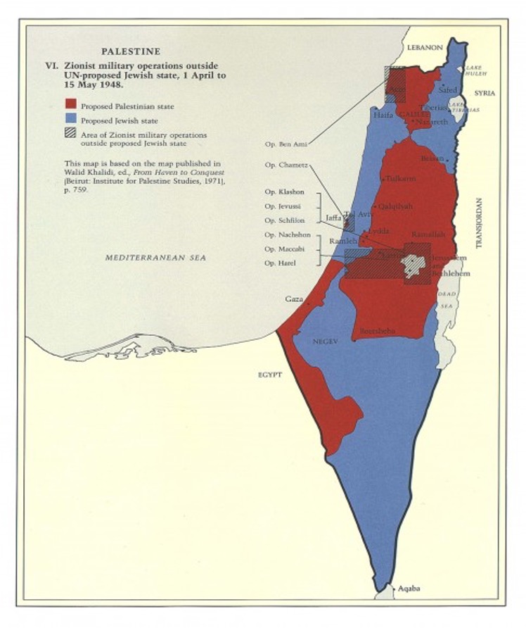 Gerusalemme fu occupata, Giaffa fu “ripulita”, decine di migliaia di palestinesi furono espulsi o costretti a fuggire, a centinaia furono uccisi.