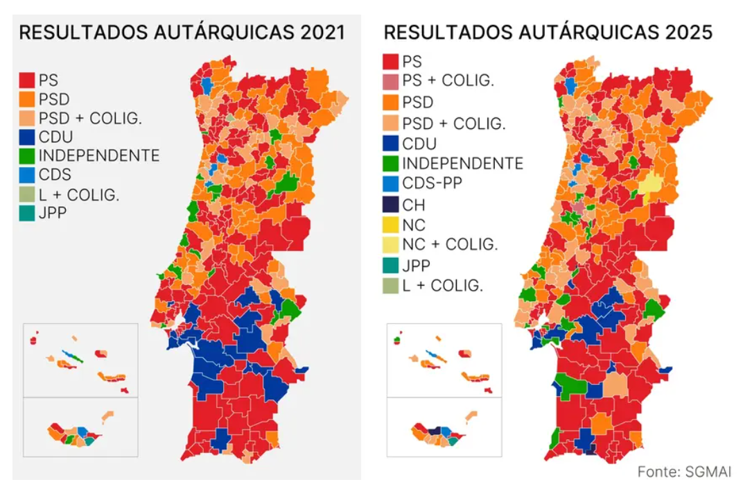 Il Partito Socialista, che ha corso quasi sempre da solo e in qualche caso alleandosi con alcune forze di sinistra, ha conquistato 127 sindaci – contro i 149 del 2021 – e il 29%. Ciò comporterà la perdita dell’egemonia nell’Assemblea Nazionale dei Comuni, che il PS controllava da ormai venti anni. Ma le amministrative hanno comunque evidenziato una ripresa dei socialisti dopo la scottante debacle registrata alle legislative di maggio. «Il PS è di nuovo l’alternativa politica all’AD (la coalizione di destra, ndr)», ha proclamato il Segretario Generale del Partito Socialista, José Luís Carneiro.