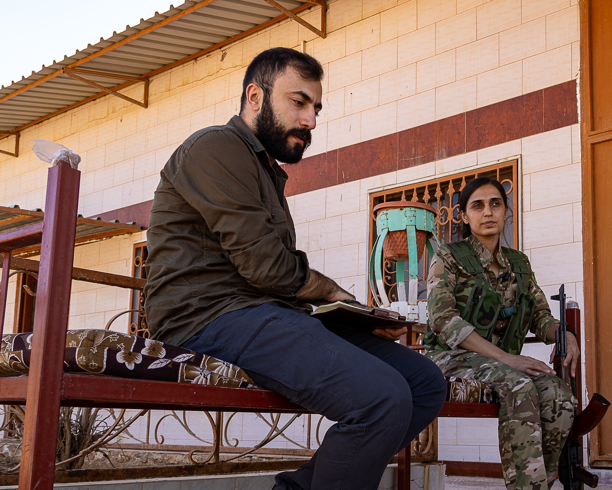 “Ho preso parte ad alcune operazioni militari, ma non a combattimenti diretti. Ho partecipato ad alcune missioni militari nel campo di Al-Hol con l’obiettivo di fermare gli attacchi dell’ISIS all’interno del campo. Non ho provato paura, piuttosto preoccupazione, perché quando entro in un’operazione militare cerco di capire tutti gli scenari possibili: cosa potrei incontrare, come dovrei reagire, cosa potrebbe accadere e in che modo potrei proteggermi. Mi chiedo se la mia esperienza militare sarà sufficiente per affrontare ciò che potrei trovarmi davanti. Trovo il coraggio sapendo che, anche se non sarò perfetta, non sono mai sola, ma avrò i miei compagni accanto e questo mi dà forza. Mi dà forza anche la consapevolezza, che come movimento, abbiamo combattuto uno dei più grandi gruppi terroristici (ISIS) e ne siamo usciti vincitori. Questo elimina la paura e mi rende pienamente cosciente di quello che sto facendo.”