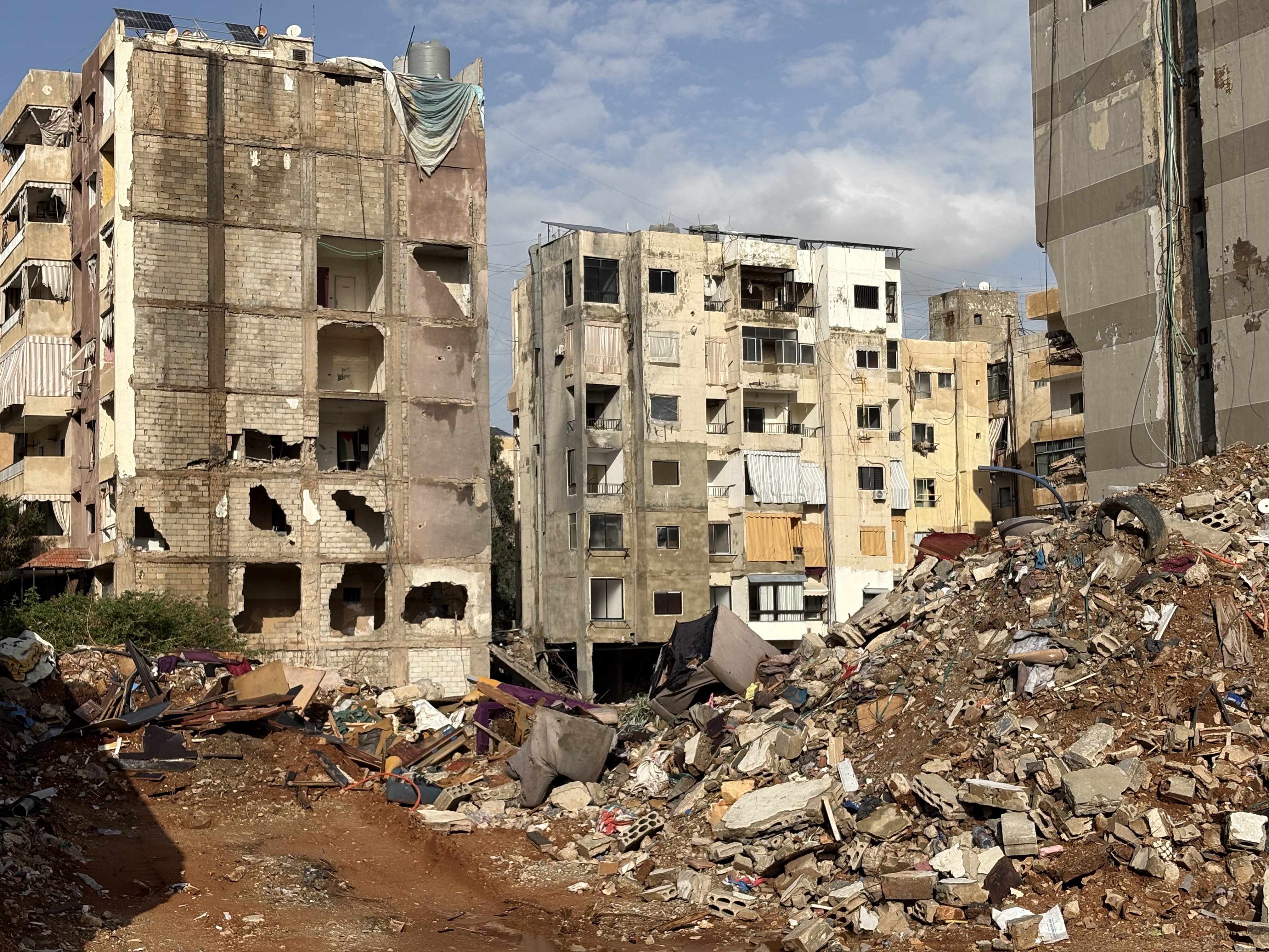 (La foto di Michele Giorgio in evidenza mostra il luogo del bombardamento israeliano in cui nel settembre 2024 fu ucciso il leader di Hezbollah, Hassan Nasrallah)